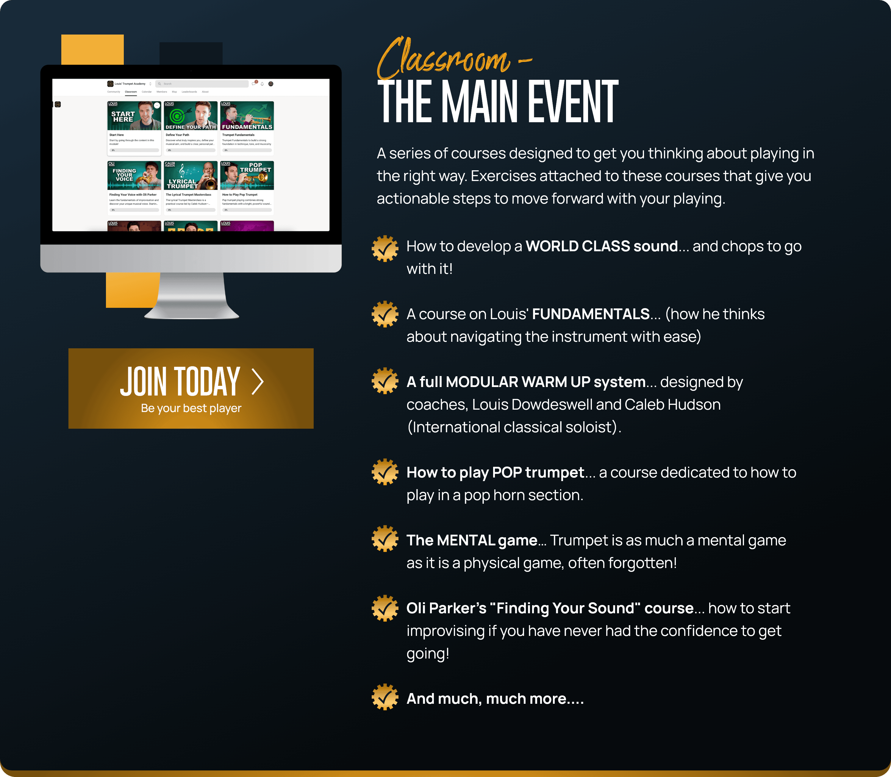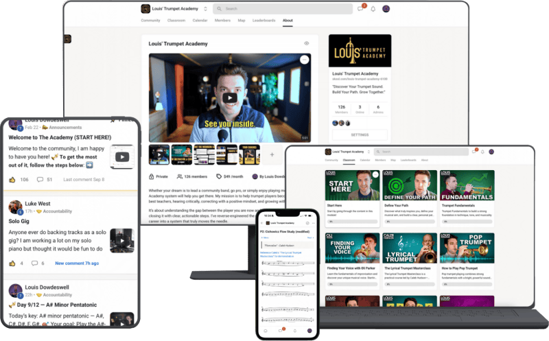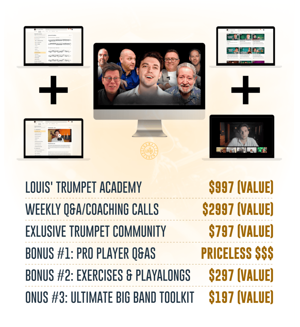 Inside Louis’ Trumpet Academy, I’m giving you that system — the exact methods that helped me and hundreds of players unlock their setup, their sound, and their upper register. With world-class guests, live support, structured courses, and a global community, this is the closest thing to a modern professional trumpet academy.