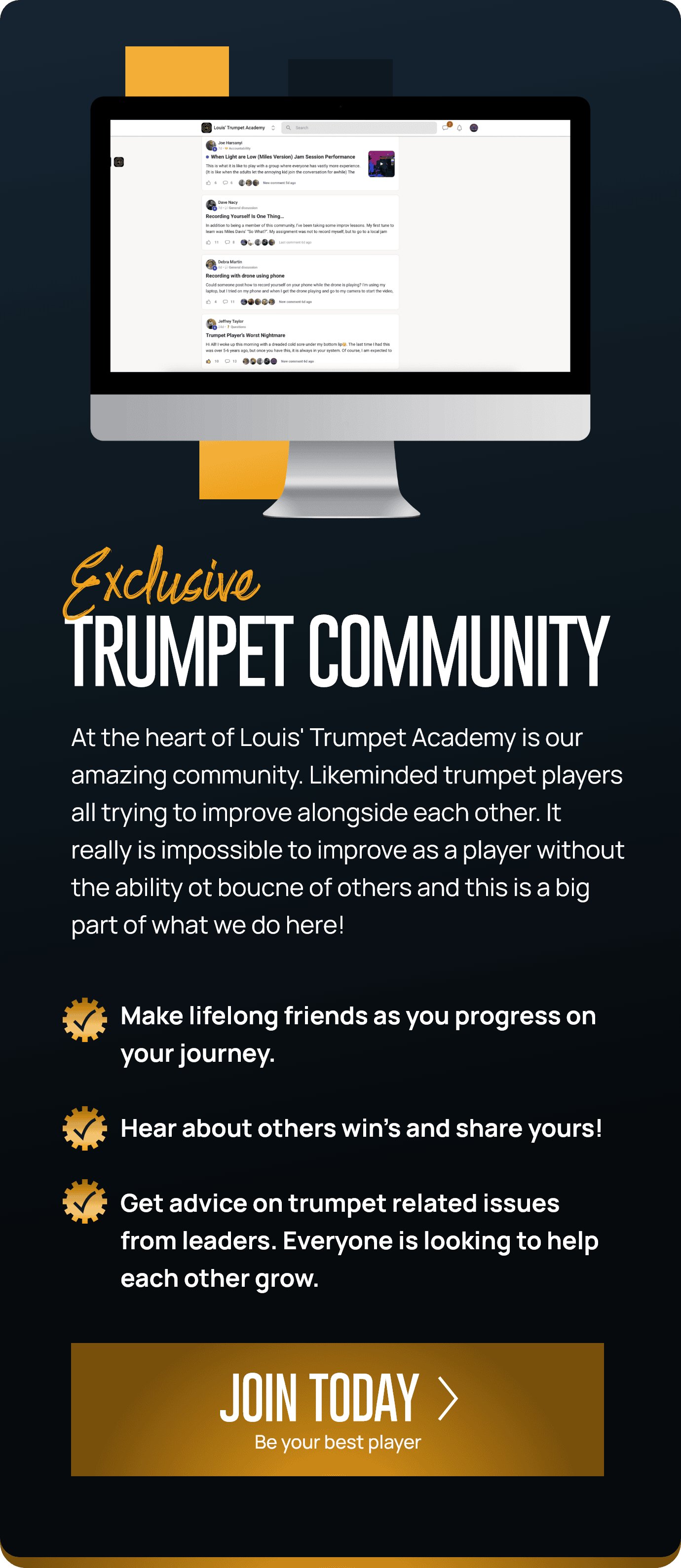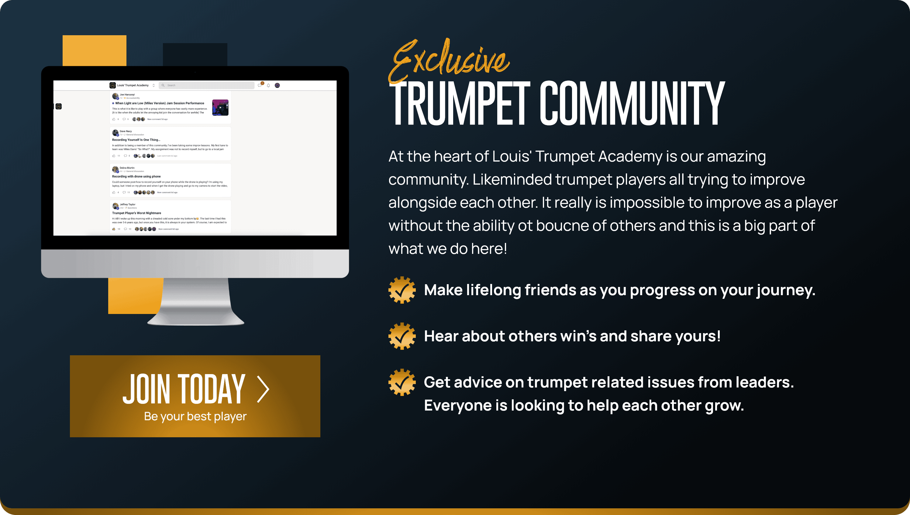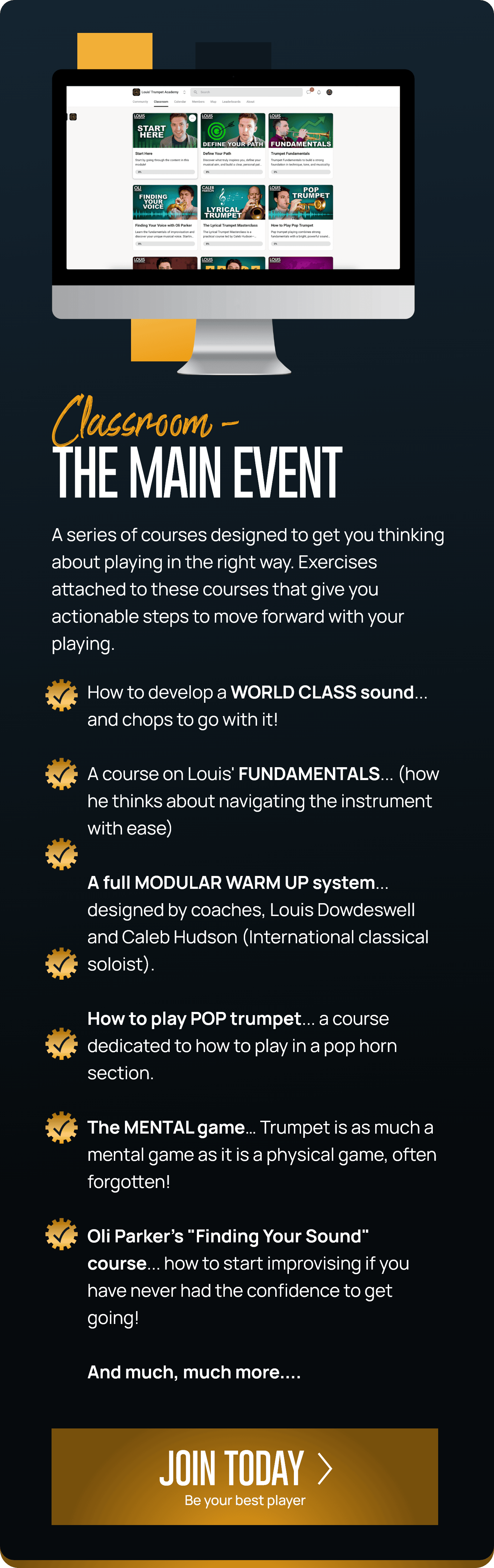 Inside Louis’ Trumpet Academy, I’m giving you that system — the exact methods that helped me and hundreds of players unlock their setup, their sound, and their upper register. With world-class guests, live support, structured courses, and a global community, this is the closest thing to a modern professional trumpet academy.